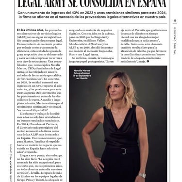 Natalia Martos es CEO y fundadora de Legal Army. Previamente fue socia y líder de sendas áreas tecnológicas de dos bufetes españoles de reconocido prestigio. Antes de ejercer la abogacía en despacho, fue abogada in-house durante 12 años en el Grupo PRISA, llegando a ser general counsel para los asuntos digitales y directora de privacidad a nivel global. Antes de asumir este puesto, fue Directora Jurídica y de Privacidad de la extinta red social española Tuenti.